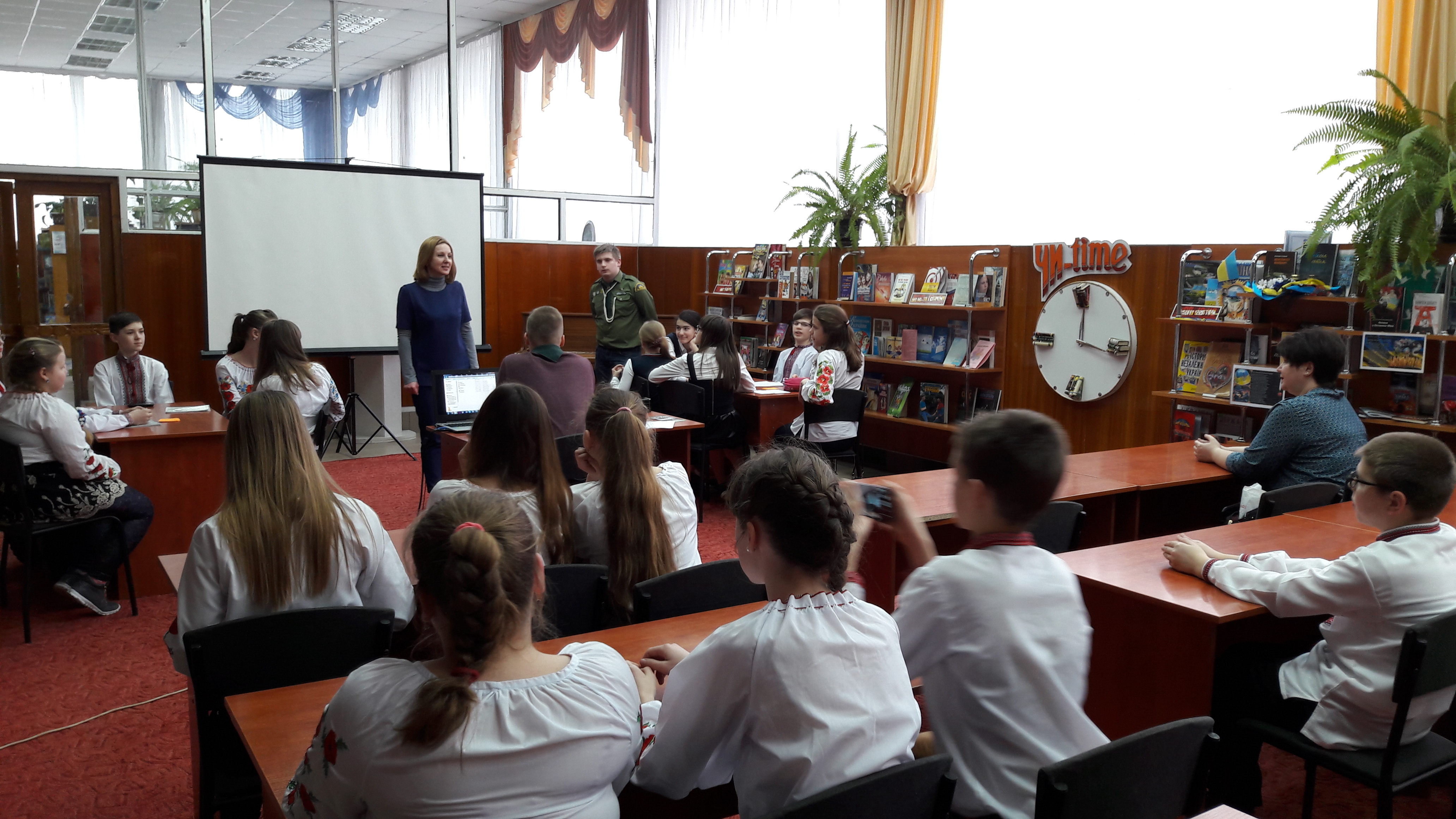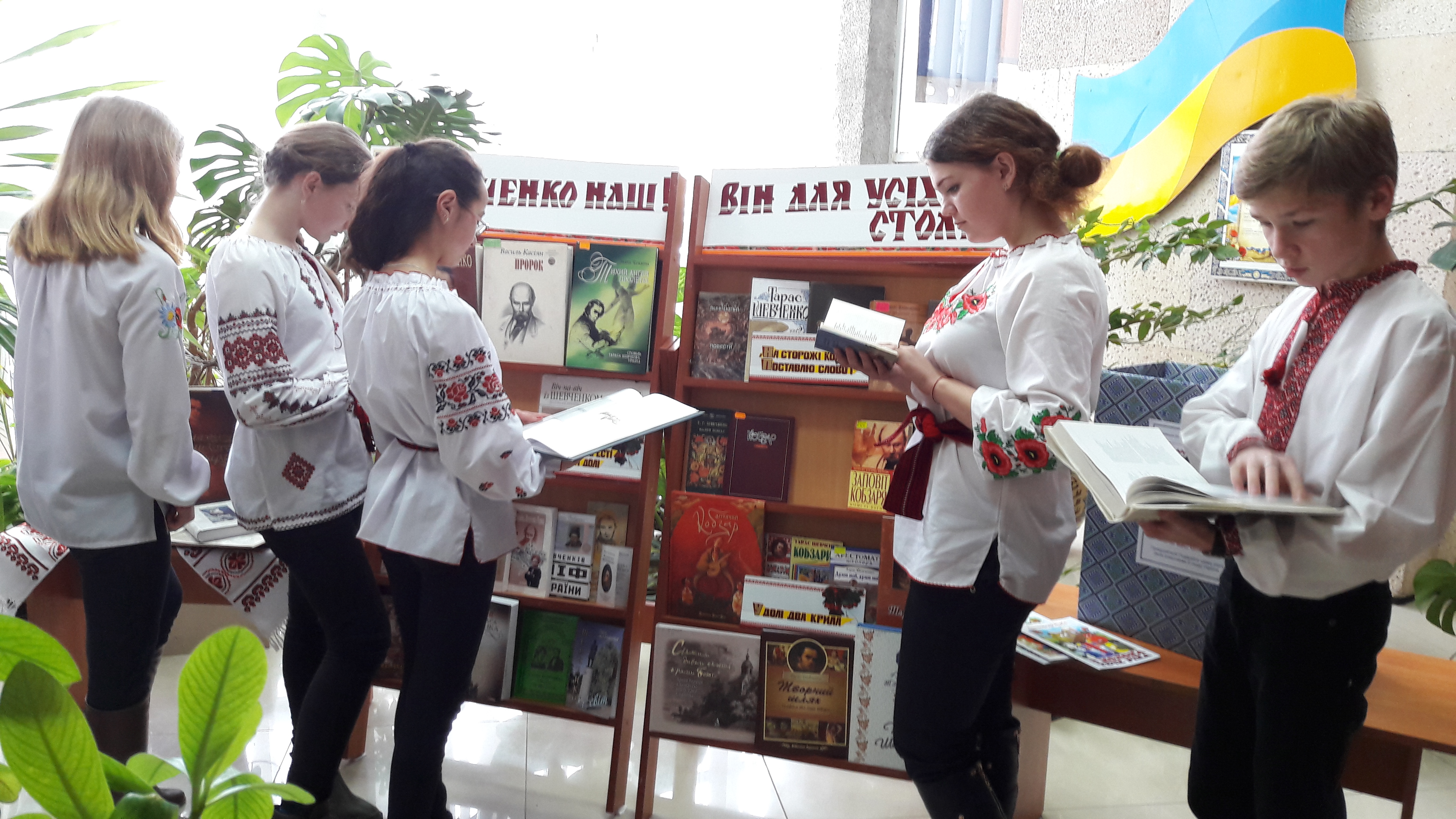 Цього дня на екскурсію до бібліотеки завітали діти с.Гвардійське. Вони переглянули виставку-персоналію “Шевченко наш! Він для усіх століть!”, а також доєдналися до акції “Обніміться ж, брати мої, Молю вас, благаю!”.