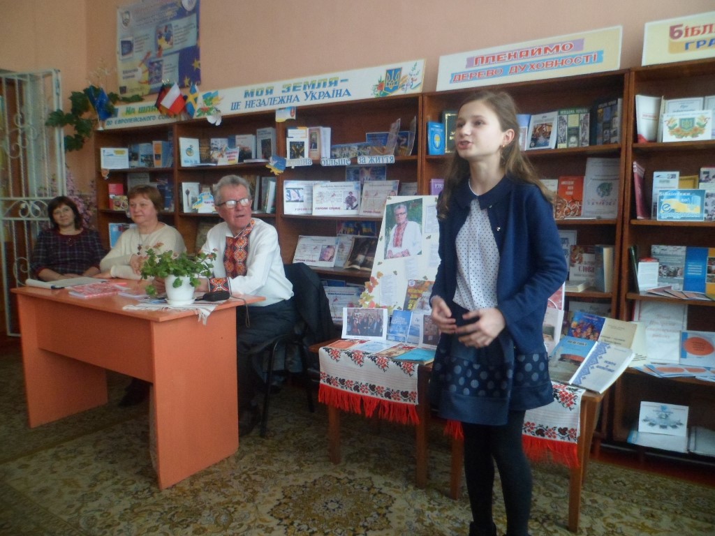 Учні читали вірші Тараса Шевченка, Ліни Костенко, а учасники театру “Браво” міського будинку культури: Анна Хурс, Анна Кректун,Олександра Гуляєва читали вірші  Лесі Українки, Леоніда Глібова. Гумористичні твори Павла Глазового читав Назар Свередюк.през4