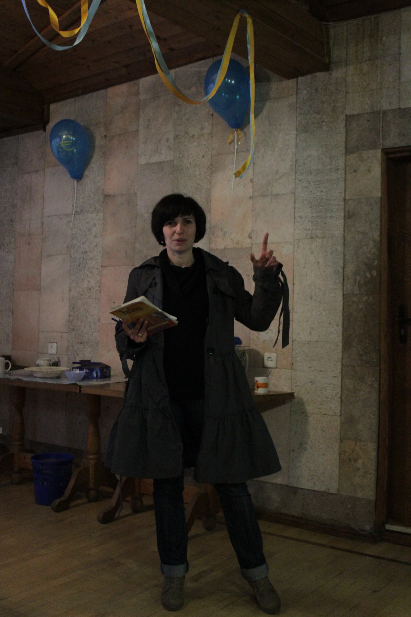 Після музичної “розрядки” молодь поринула у “5-хвилинку”. Саме стільки часу виділялося на обговорення творчості улюбленого європейського письменника, чиї книги навчають, спонукають на хороші вчинки, дають можливість пізнати життя. Про кого тільки не розповідали – Зигмунд Фрейд, Рей Бредбері, Джон Бойн, Роберт Бернс та інші. Кожний виступ заслуговував гучних оплесків, на що того вечора не скупився ніхто.