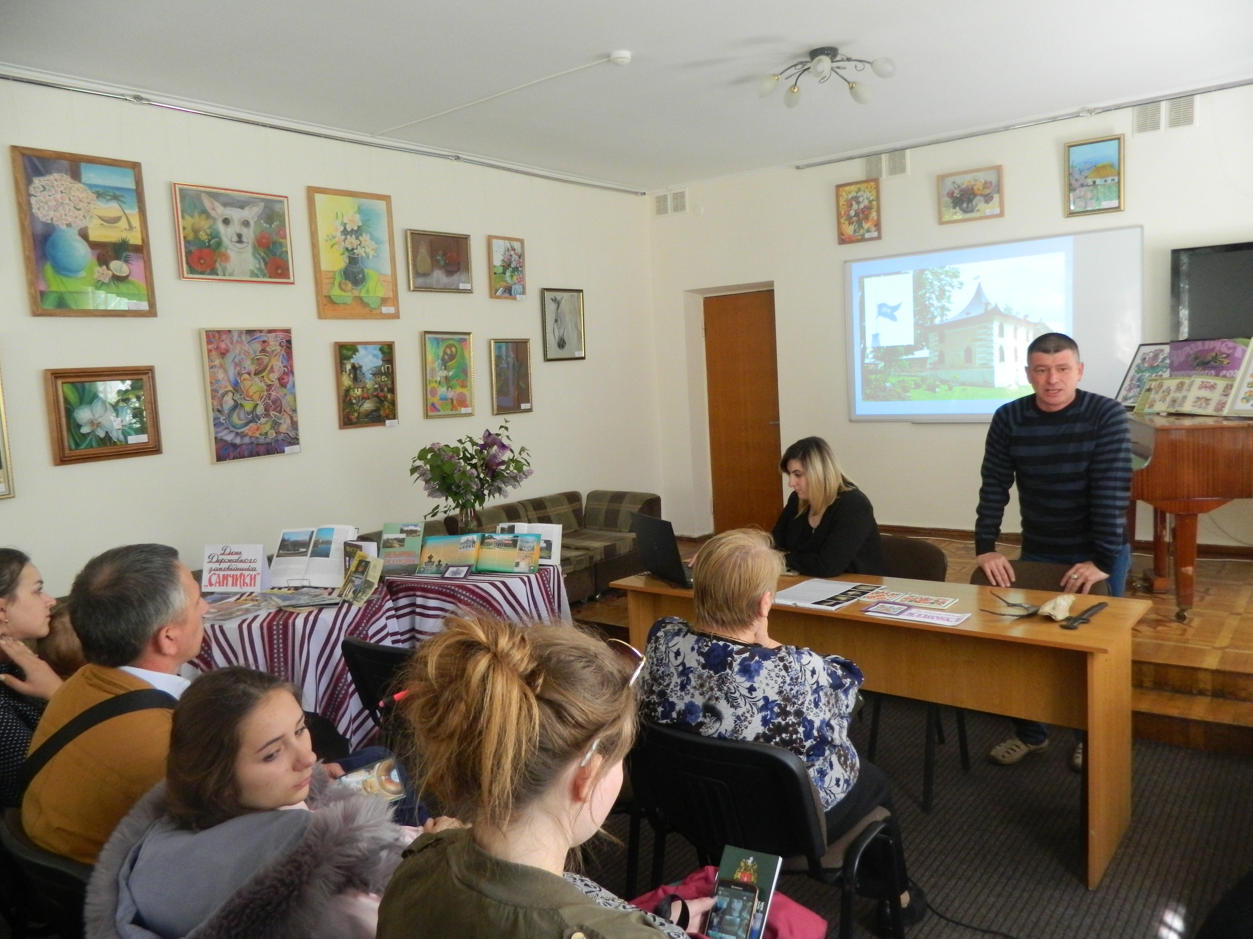 У гості до фахівців і  читачів  бібліотеки  для проведення Дня музею завітали директор заповідника Богдан Пажимський  і заступник директора Інна Коломієць. Вони познайомили читачів бібліотеки  з історією Самчиківського маєтку – його власниками, архітекторами, скульпторами, художниками, що  брали  участь у його розбудові. Цікавою сторінкою зустрічі стали слайд-шоу, демонстрація картин та розповідь про особливості самчиківського розпису. Віртуально із Самчиківським заповідником та  через експонати,  привезені із музейного фонду,   впродовж дня познайомились учні НВК №2,  НВК №4,  ВПУ №25.