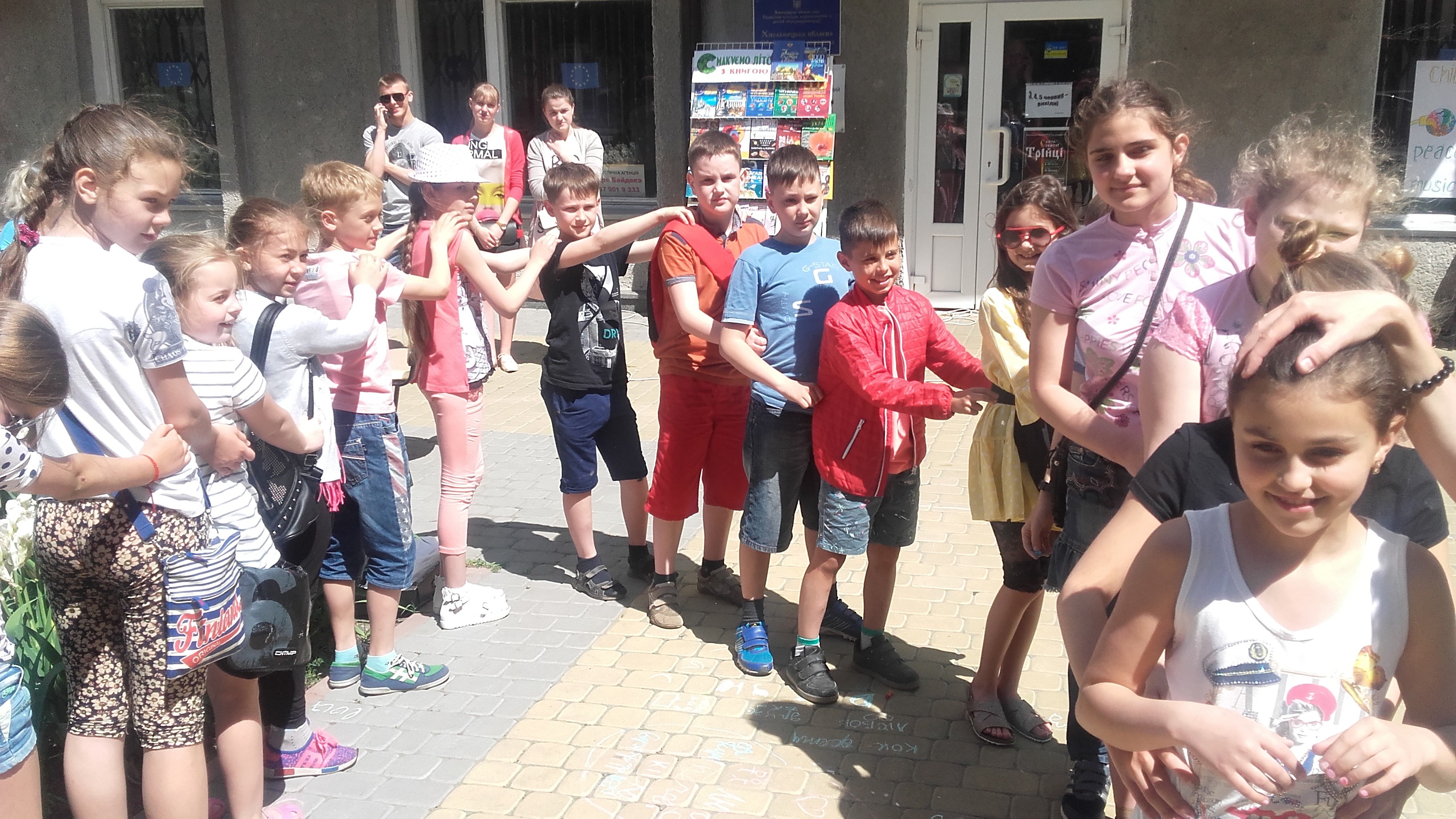 На відкритому майданчику біля книгозбірні фахівці читального залу організували дитяче свято для молодших читачів, які відпочивають у пришкільних таборах. Діти брали участь у веселих конкурсах, малювали крейдою, виготовляли закладки для книг, гойдались на сконструйованій бібліотекарями спеціально для свята гойдалці, влаштували креативну фотосесію та взяли участь у дитячому перформенсі.