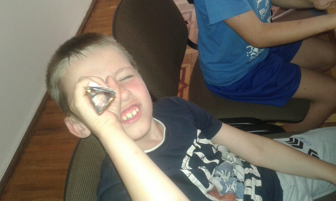 Серед улюблених дитячих іграшок- калейдоскоп, то чому б не спробувати зробити його своїми руками? Виготовлення фантастичних калейдоскопів стало темою чергового майстер-класу. Різнокольорові картинки, химерні візерунки стали результатом роботи всіх, хто завітав на майстер-клас. Кожен отримав свій казковий світ за склом, виготовлений власноруч.