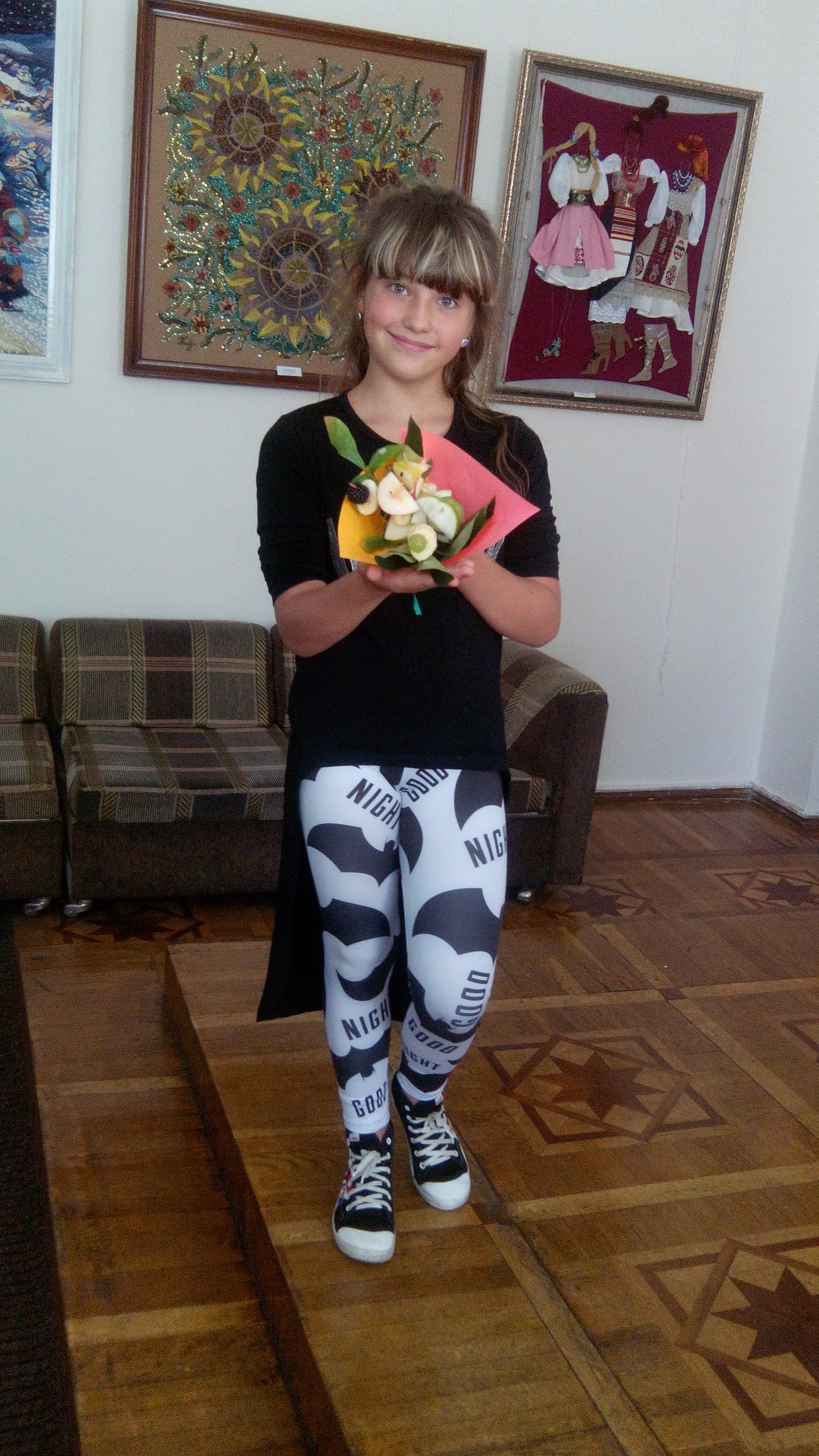 Смачні букети та поробки з овочів і фруктів своїми руками виготовляли діти на майстер-класах «Солоний ріжок» та «Фруктові фантазії». Учасники навчилися не тільки підбирати смачні асорті з овочів та фруктів, а ще складати їх в красиві композиції. Кульмінацією стали фруктові портрети учасниць майстер-класу.