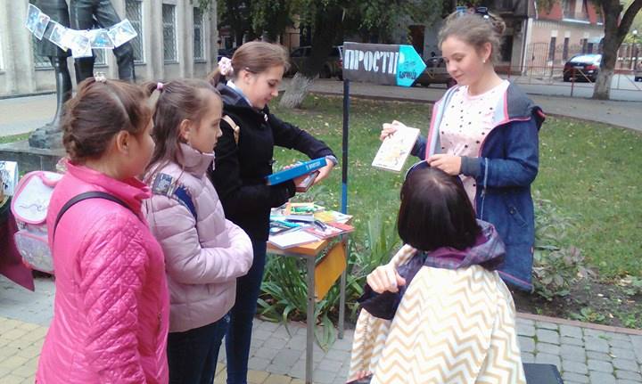 Таку назву має щорічна вулична акція з обміну книг, яку проводить обласна бібліотека для юнацтва для своїх користувачів під час святкування Всеукраїнського Дня бібліотек. 28 вересня школярі, юні журналісти, лідери ”Нової генерації міста”, а також педагоги-організатори шкіл міста прийшли, аби взяти участь в акції – обміні. Саме дійство відбувалося на бібліотечному майданчику, який розділився на декілька частин: