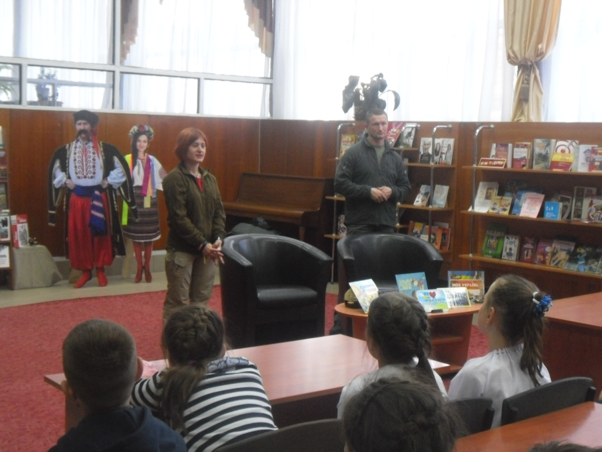 День захисника України  та День українського козацтва відзначили  в  Хмельницькій обласній бібліотеці для дітей імені Т.Г. Шевченка. Українці – нація героїв! Саме  під такою назвою відбулася патріотична акція.  В акції взяли участь очільник Товариства Збереження Історії України “Січ” Дмитро Савчук, голова благодійного фонду “Подих надії нації” Тетяна Юзепчук, волонтер та учасник АТО Віктор Данилевський. Під час щирого спілкування емоції переповнювали  як читачів, вчителів, так і бібліотекарів. Запрошені гості розповідали дітям про свою громадянську позицію, вкотре підкреслюючи, як важливо любити свій рідний край, власну країну та завжди бути готовим стати на її захист. Читачі засипали запитаннями та робили селфі на згадку.