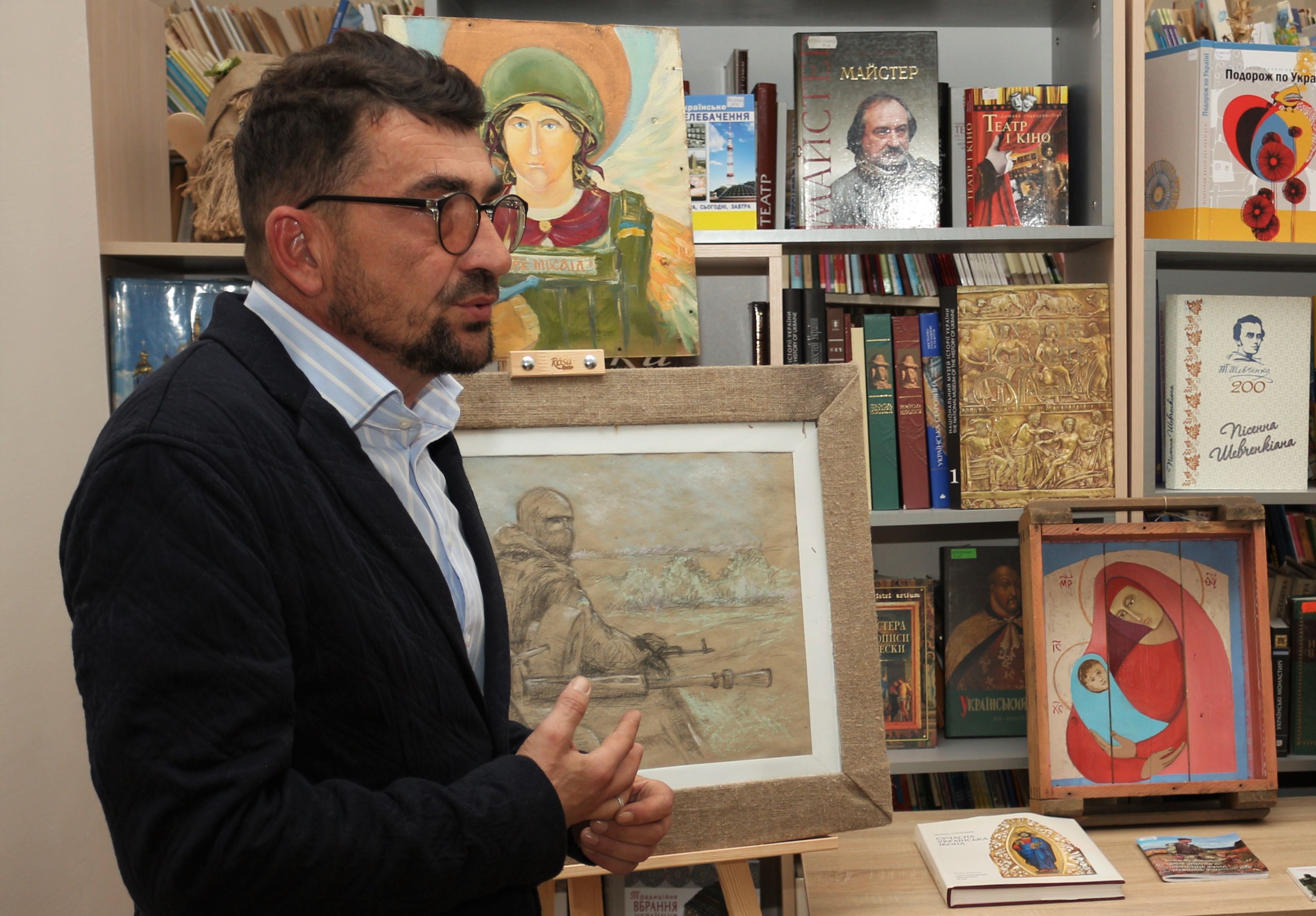 Нещодавно Хмельницькій обласній універсальній науковій бібліотеці подаровано ікону Богородиці з дитям. ЇЇ автор – художник з Житомирщини Володимир Кравчук, який днями презентував в бібліотеці серію своїх графічних та малярських робіт “Вівтар мужності”, присвяченої героїчним воякам АТО та зокрема трагічно загіблому при захисті Донецького аеропорту учневі маляра. Поки що ікона перебуває в діючій експозиції, переглянути яку можна до кінця жовтня 2017 року. Дирекція та колектив бібліотеки висловлює вдячність автору та зичить йому творчої наснаги і реалізації задумів.