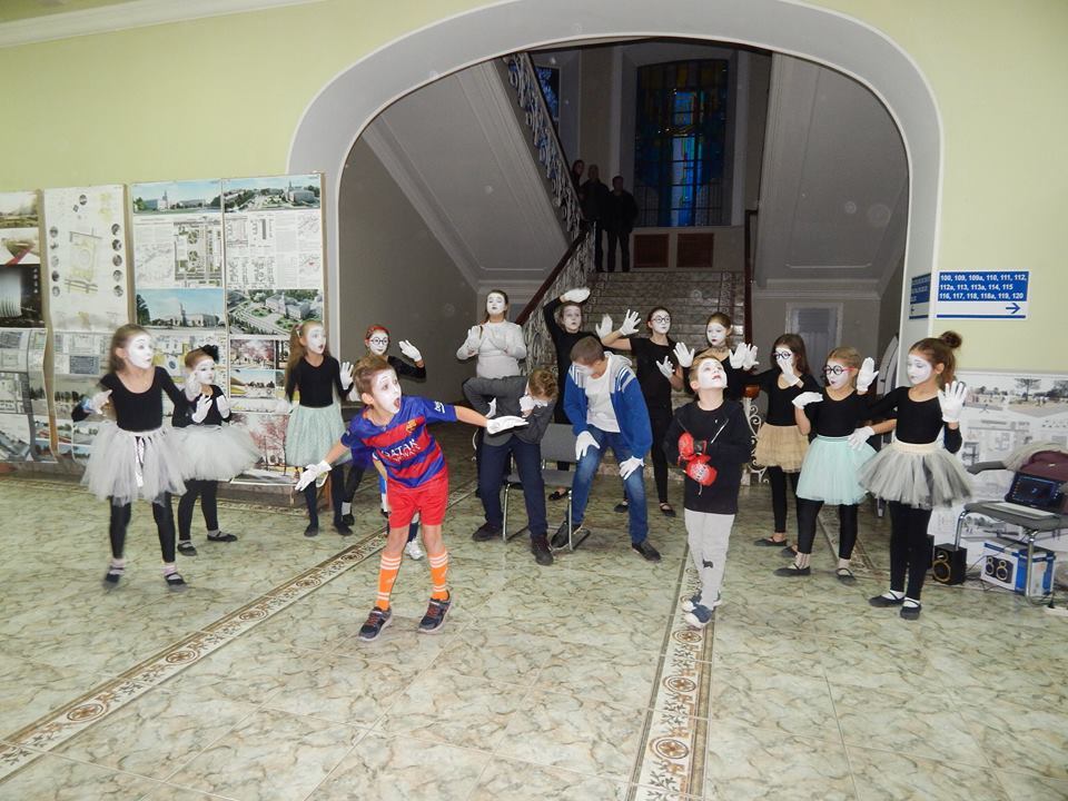 29 грудня у приміщенні Хмельницької міської ради відбувся один з таких флешмобів за участю дитячої театральної студії «Летючий корабель» (керівник Світлана Тукало). Маленькі міми силою свого мистецтва мали на меті привернути увагу громадськості та чиновників до питання необхідності лобіювання ініціативи створення такої молодіжної платформи в нашому місті. Їм це цілком вдалося. І виступ видався навіть дещо символічним, адже, як відомо, міми не розмовляють, а передають свої емоції лише пластикою рухів. Тож, актори ніби нагадували дорослим про те, що проблеми молоді часто замовчуються і це призводить до непоправних наслідків.