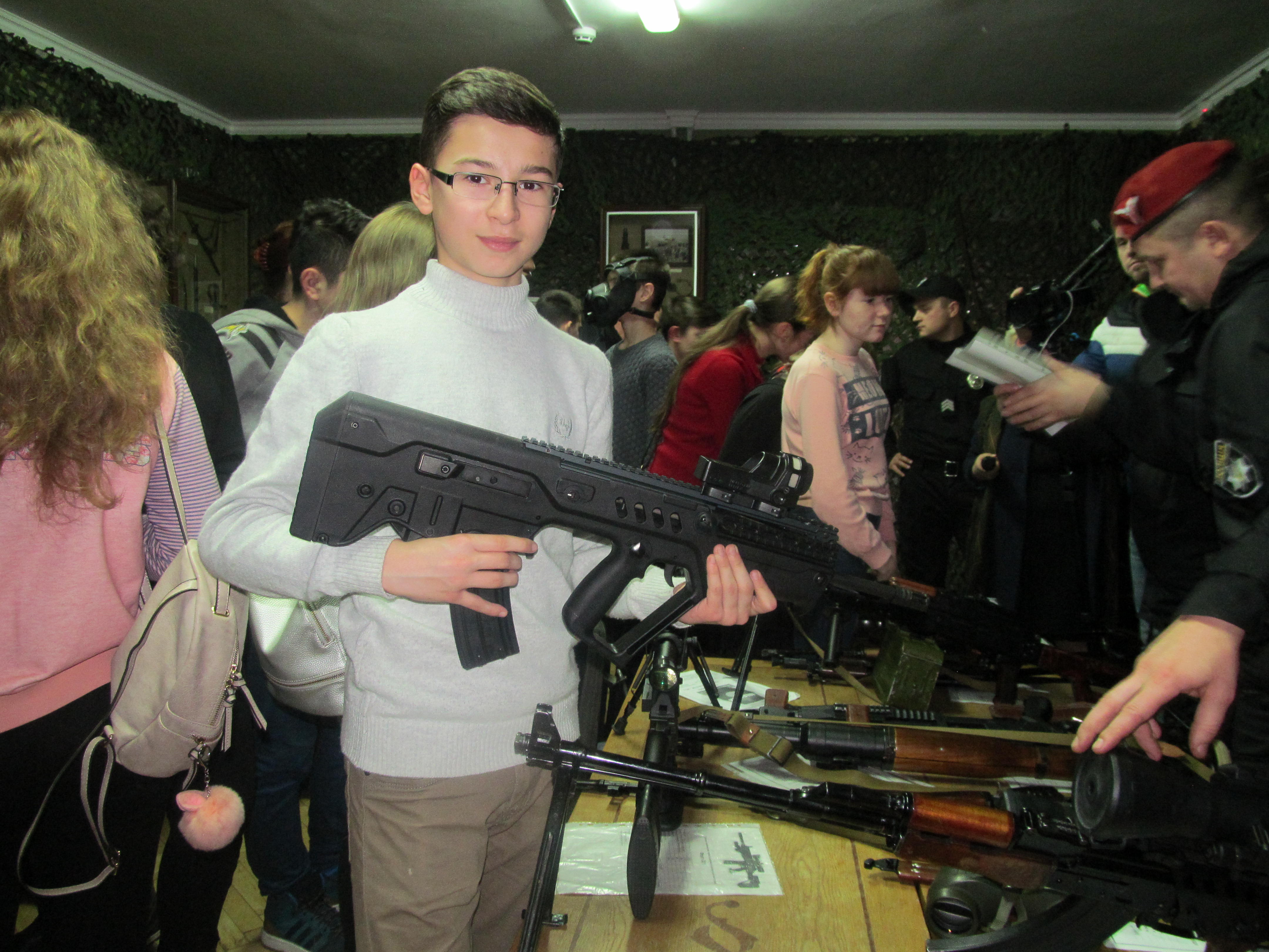 Знанням зброї та вмінням з нею поводитись вразив усіх восьмикласник Владислав Кругляк. Як виявилось, батько школяра в минулому служив у Збройних Силах, а хлопець уже давно займається спортивною стрільбою і своє майбутнє хоче пов’язати із захистом Батьківщини.