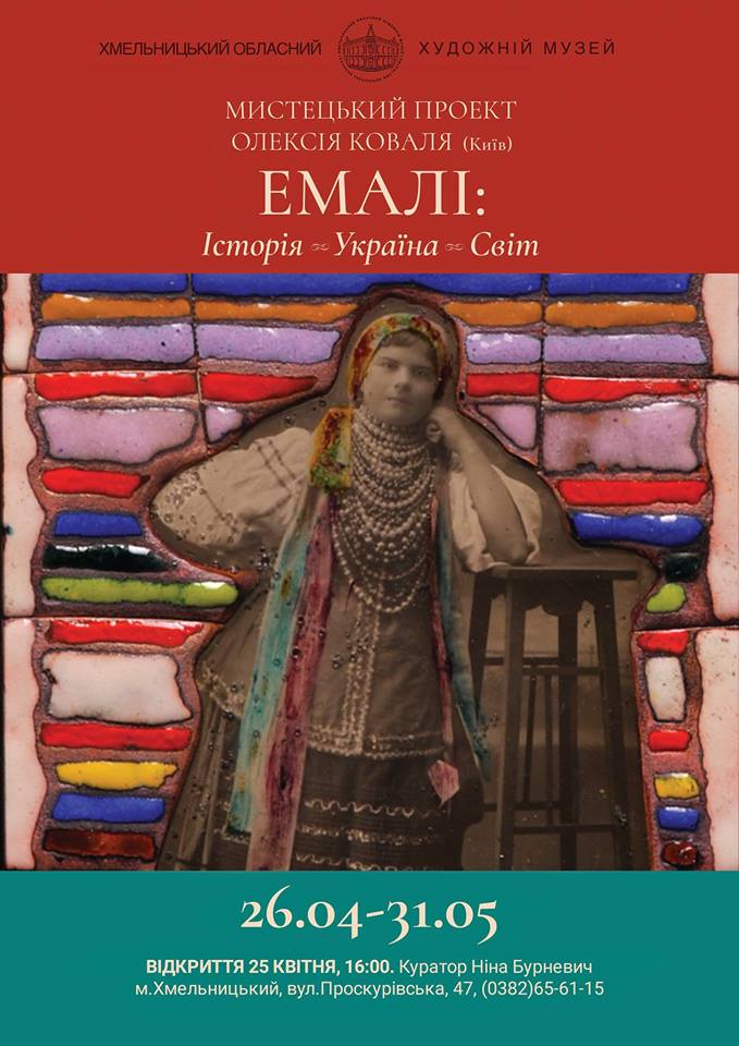 25 квітня о 16.00 Хмельницький обласний художній музей презентуватиме всеукраїнський культурно-освітній проект майстра-емальєра Олексія Коваля (Київ, Україна), котрий має за мету ознайомити глядача з технікою гарячої емалі, в якій творили ще древні єгиптяни, греки, візантійці.