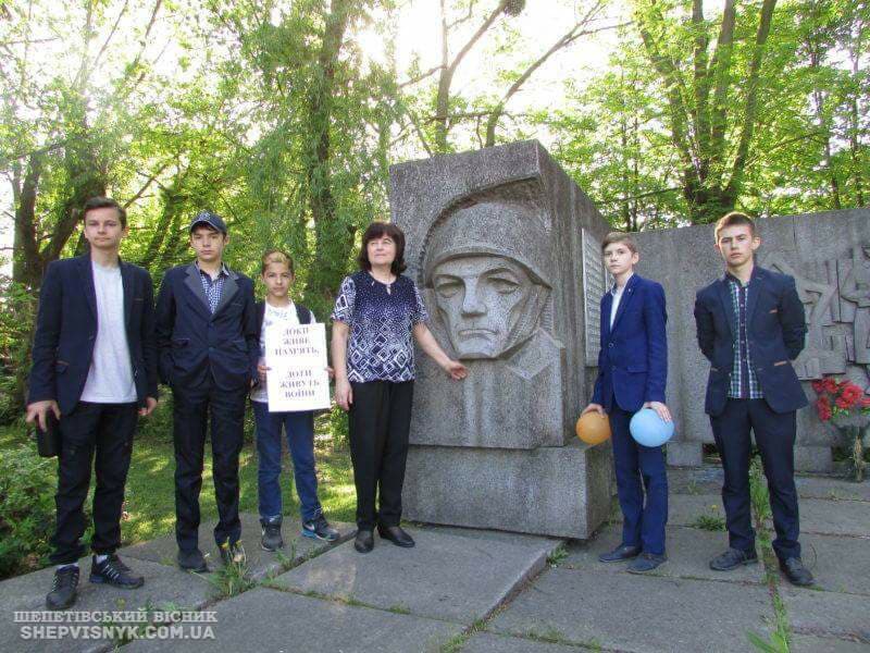Відбулась урочиста хода учнів до меморіального комплексу «Вічний вогонь», поклали живі квіти, вшанували пам’ять полеглих хвилиною мовчання.