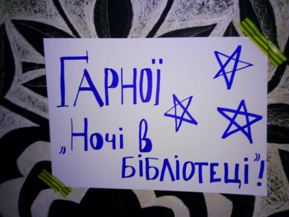 В обласній бібліотеці для юнацтва з 12-го на 13-е травня вже втретє реалізовано спільний з ГО «Молодь за краще майбутнє» проект «Ніч в бібліотеці», який надає можливість юнакам та дівчатам реалізувати свої творчі задумки. Приміщення бібліотеки вночі перетворюється на театральну сцену і кінозал , танцювальний майданчик і ігроленд!