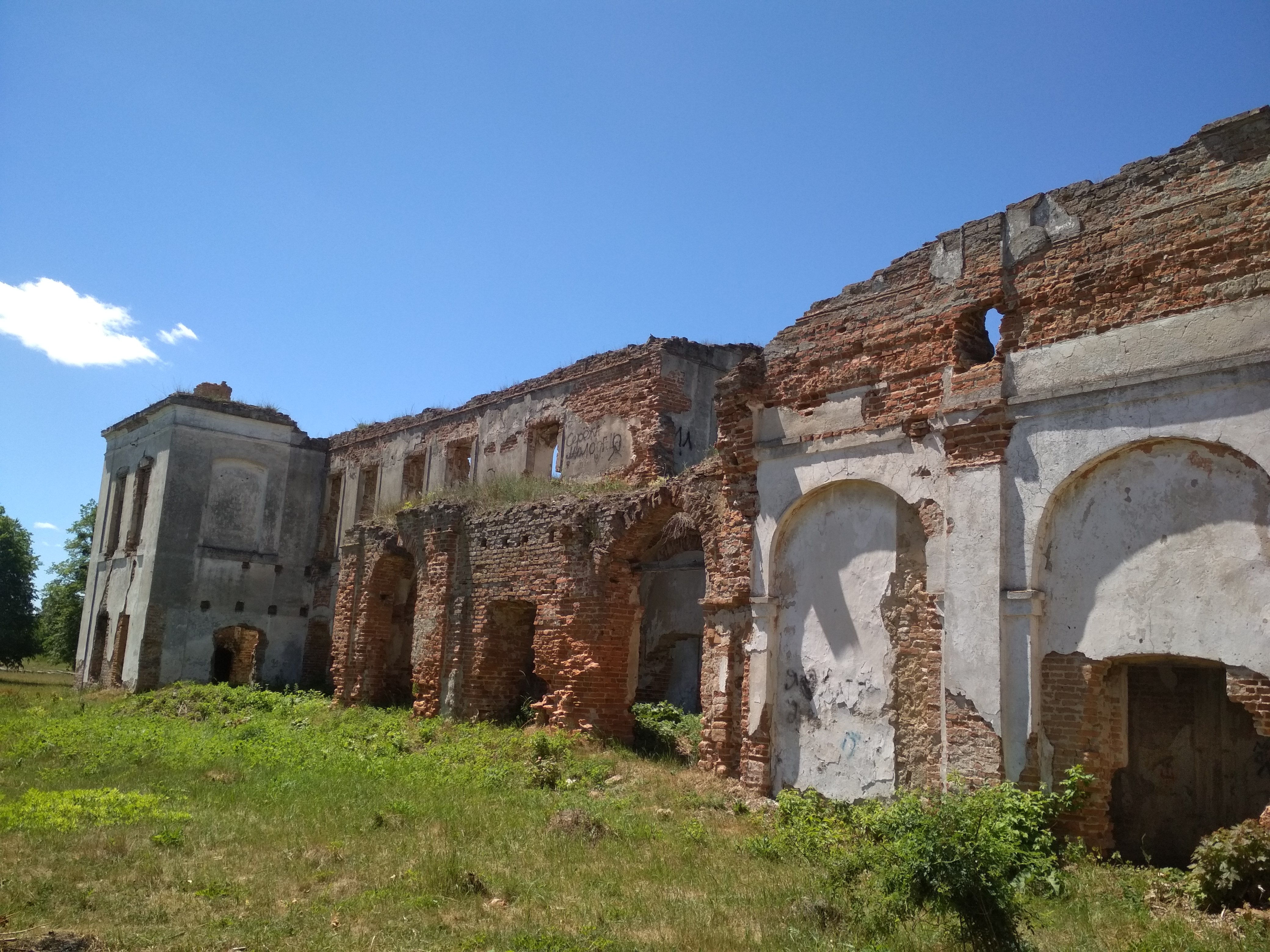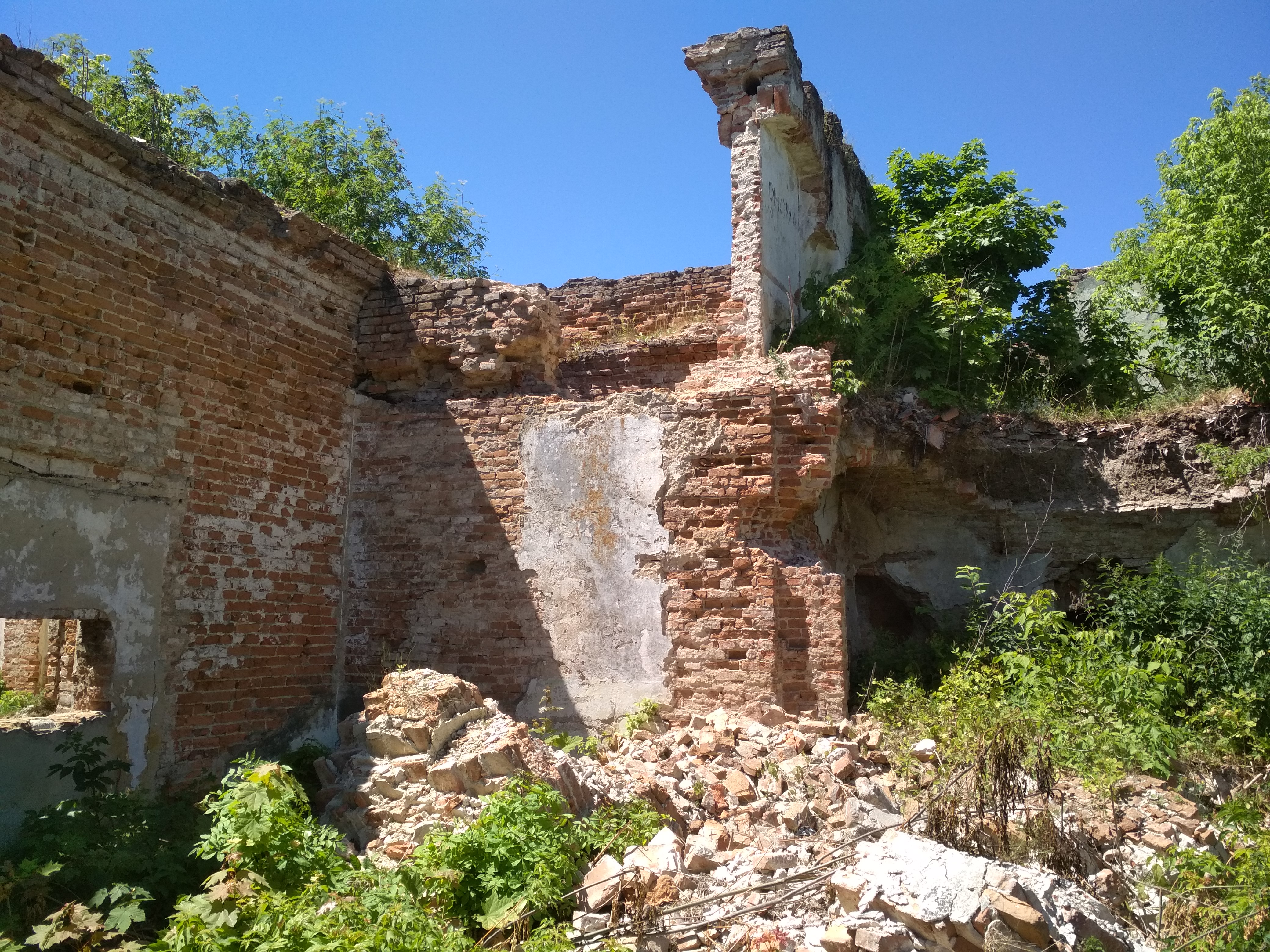 В результаті обстеження встановлено, що пам’ятка, в наслідок повної відсутності даху та водовідвідних заходів, мають значні руйнування огороджувальних та несучих конструкцій. Наявні масові обвали склепінь та поверхових перекриттів, руйнація несучих простінків, значні тріщини в стінах та фундаментах (до 15см). Деякі стіни мають відхилення від вертикальної площини до 40 см, проходить процес неконтрольованої руйнації фундаментів, розлісування цегли та тиньку фасадів. Вцілілі склепіння, арки та інші конструктивні елементи мають загрозливий вигляд і небезпечні для оточуючих. На території всієї Садиби повна відсутність попереджувальних написів про значну небезпеку життю та здоров’ю громадян.