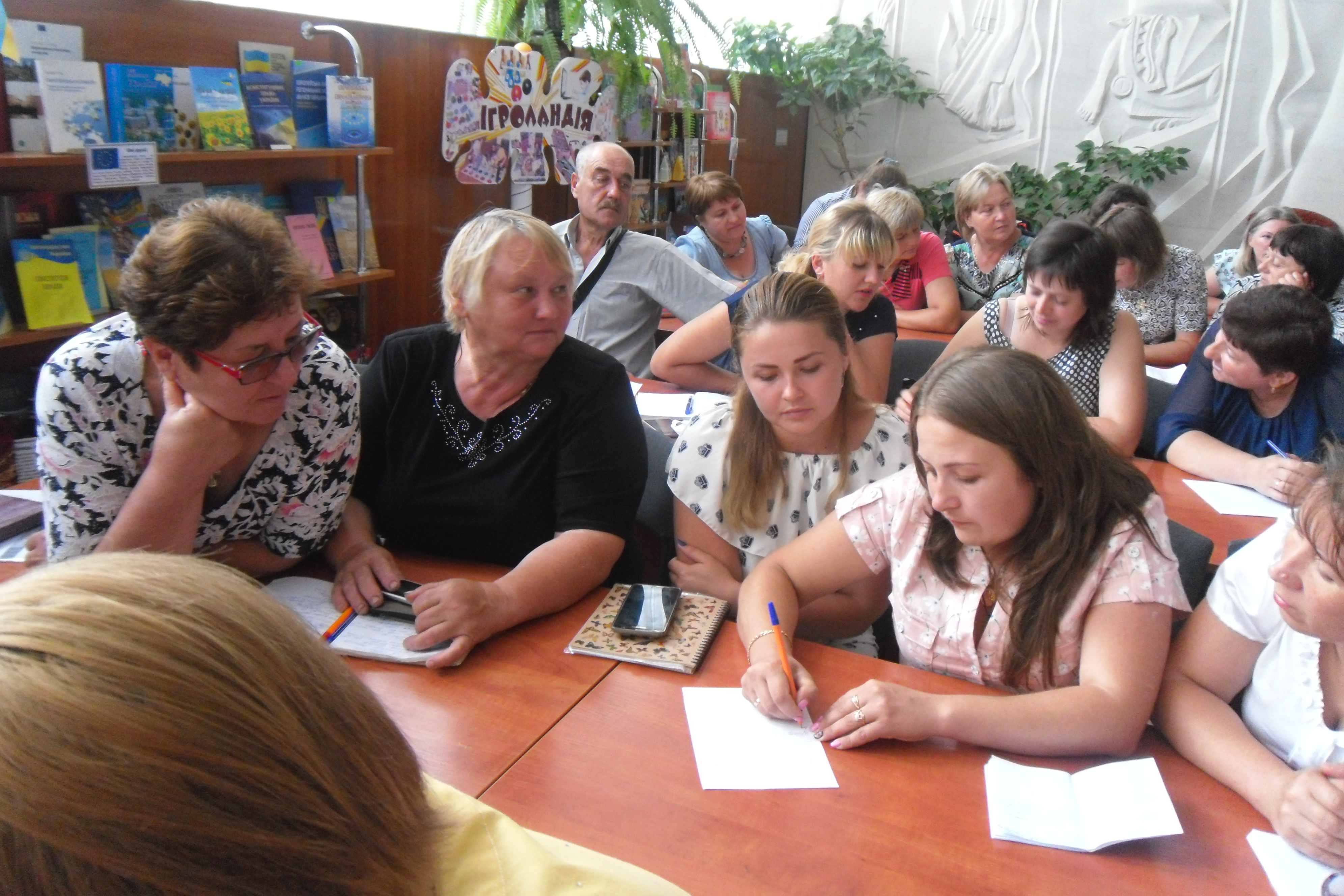 Заняття школи професійного розвитку “Ідеї. Практика. Досвід” для працівників сільських бібліотек ОТГ відбулися на базі обласної бібліотеки для дітей імені Т.Г.Шевченка. До професійного діалогу запросила бібліотекарів директор обласної бібліотеки для дітей імені Т.Г.Шевченка Валентина Черноус. Вона повідала про сучасні реалії та напрямки роботи публічних бібліотек з читачами-дітьми в умовах адміністративно-територіального реформування.