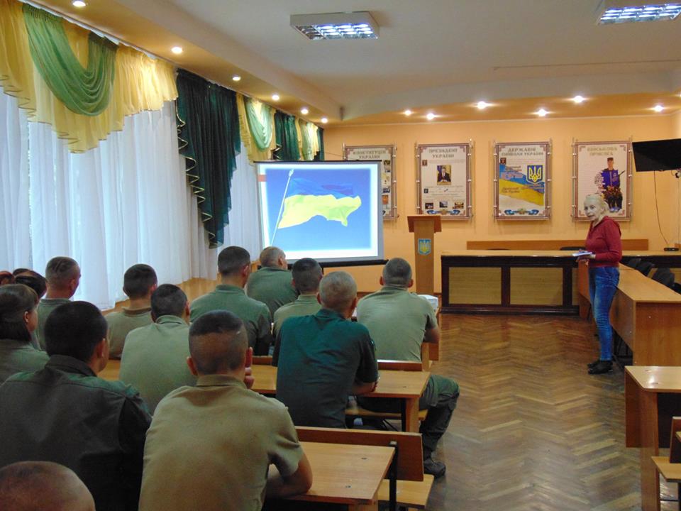 Слайд – презентація «Конституція України – основний закон суспільства і держави» представила етапи конституційного процесу в незалежній Україні. Військовослужбовці мали змогу познайомитись з виданнями з фондів бібліотеки, що були представлені на книжковій виставці «Конституція України – могутній акорд держави і нації».