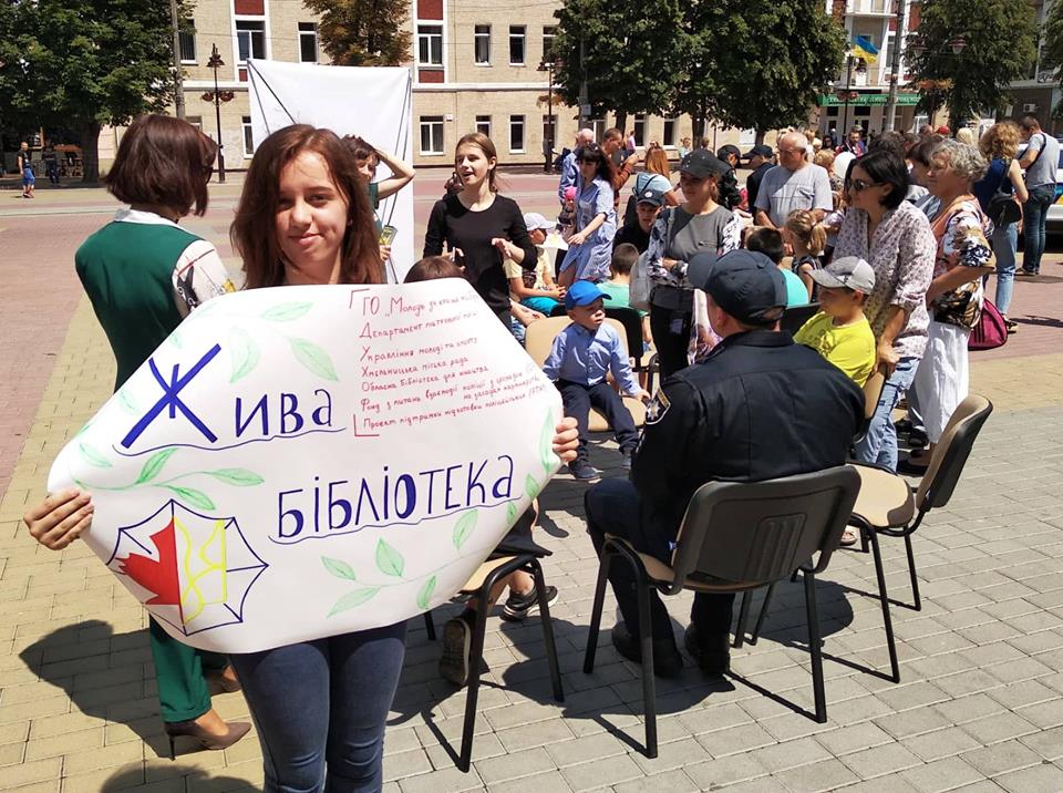 До святкування у центрі міста третьої річниці Патрульної поліції доєдналась і обласна бібліотека для юнацтва. Спільно з ГО «Молодь за краще майбутнє» фахівці читального залу в рамках проекту «Активність починається з тебе» провели цікаву ініціативу і надали хмельничанам унікальну можливість «читати» правозахисників, як книги. Найбільше заходом зацікавились діти та підлітки. Їх батьки теж не залишились осторонь. Кожен охочий міг сісти в коло спілкування та запитати у поліцейських будь що! Учасники цікавились правовими питаннями, розпитували про повсякденну роботу полісменів. Поліцейські розповідали про нестандартні і, навіть, небезпечні ситуації своєї професійної діяльності. Наостанок кожен учасник отримав маленький подарунок.
