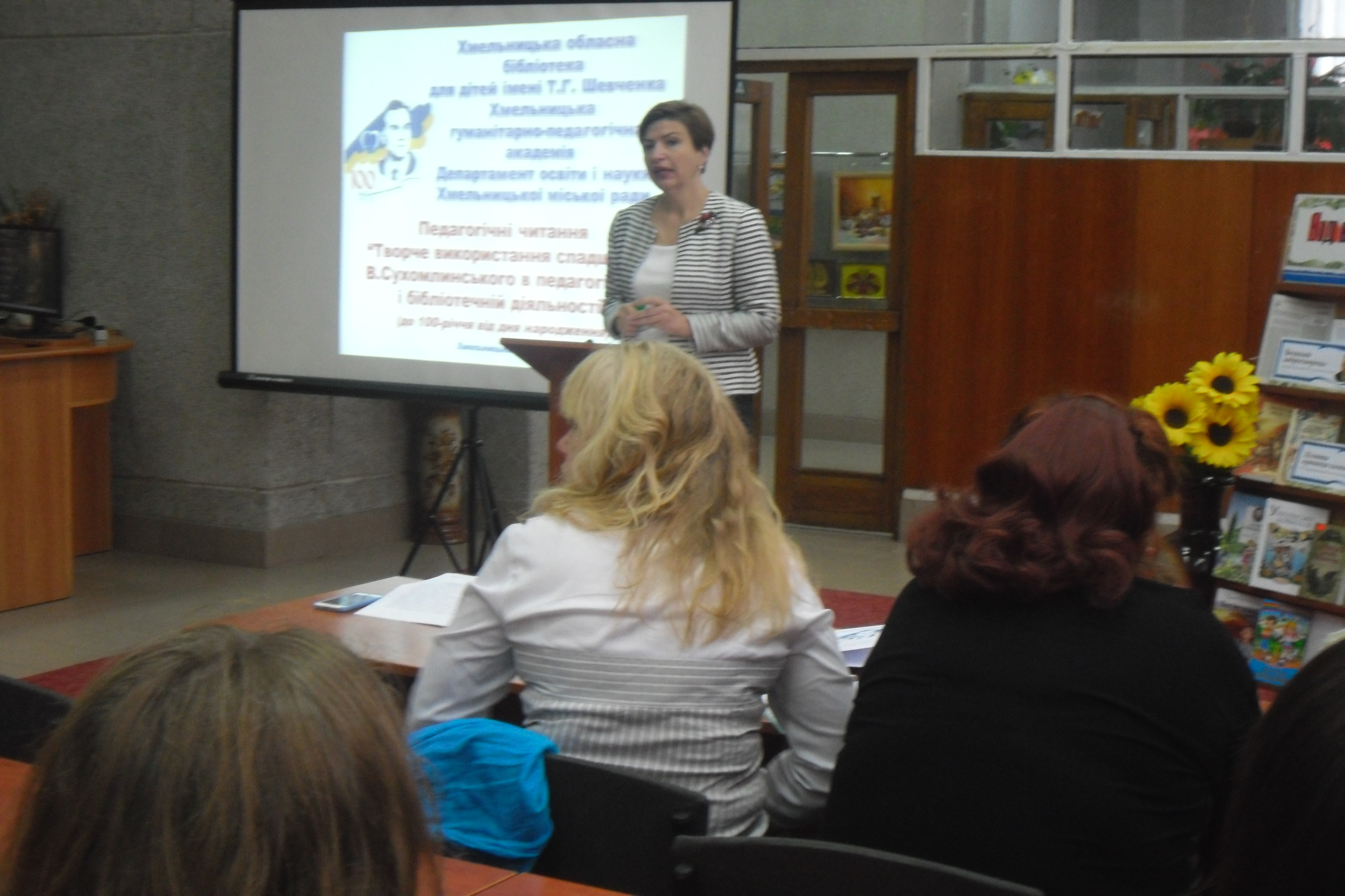 Педагогічні читання, з нагоди 100-річчя від дня народження мудрого вчителя, письменника, знаного освітянина Василя Сухомлинського, відбулися в обласній бібліотеці для дітей імені Т.Г.Шевченка. Активно взяли участь у читаннях викладачі ХГПА, методисти департаменту освіти та науки Хмельницької міської ради, освітяни міста, шкільні бібліотекарі та студенти. Оскільки всі ми сповідуємо основні цілі – виховання дітей засобами слова та залучення їх до книги та читання.