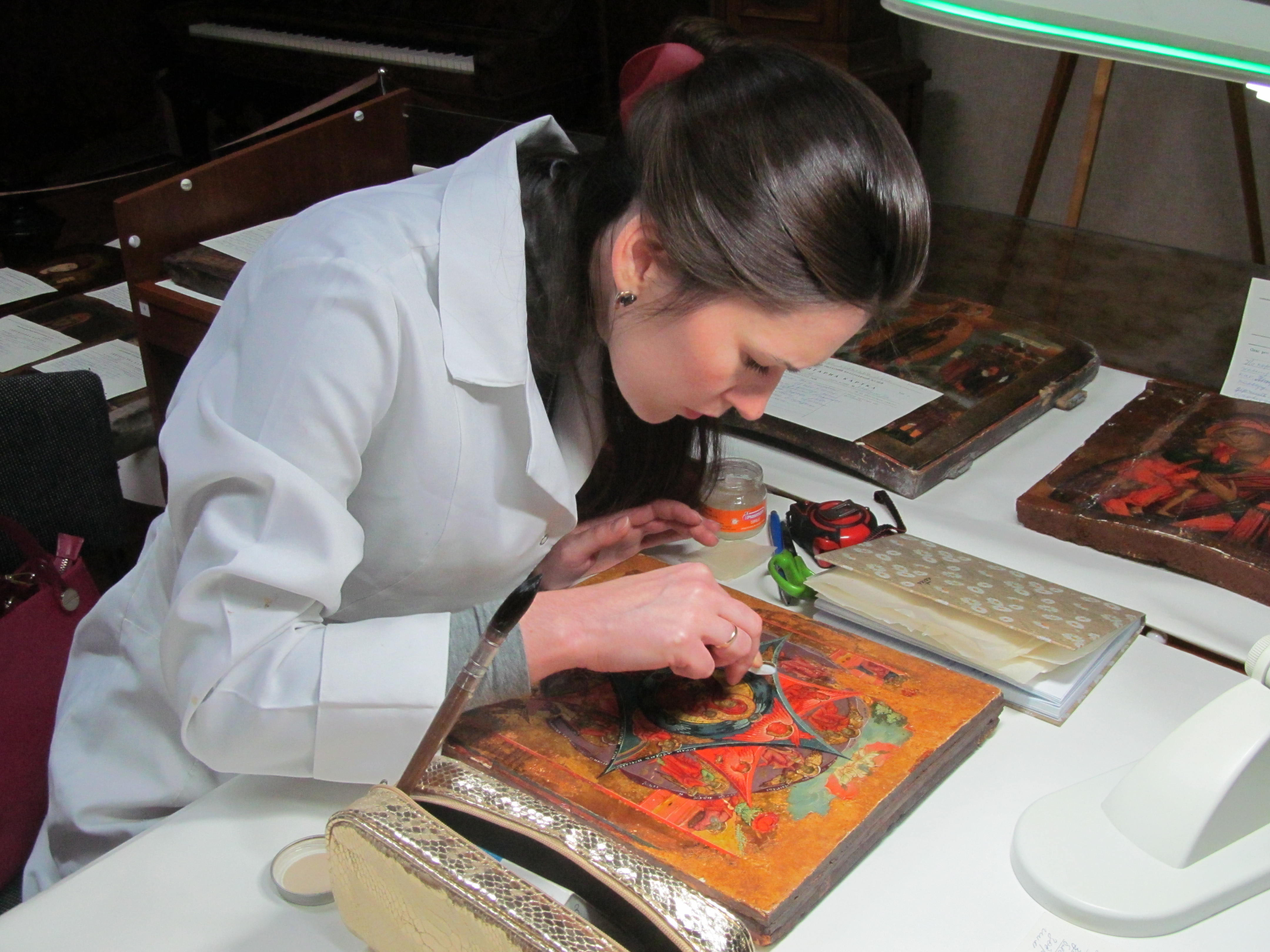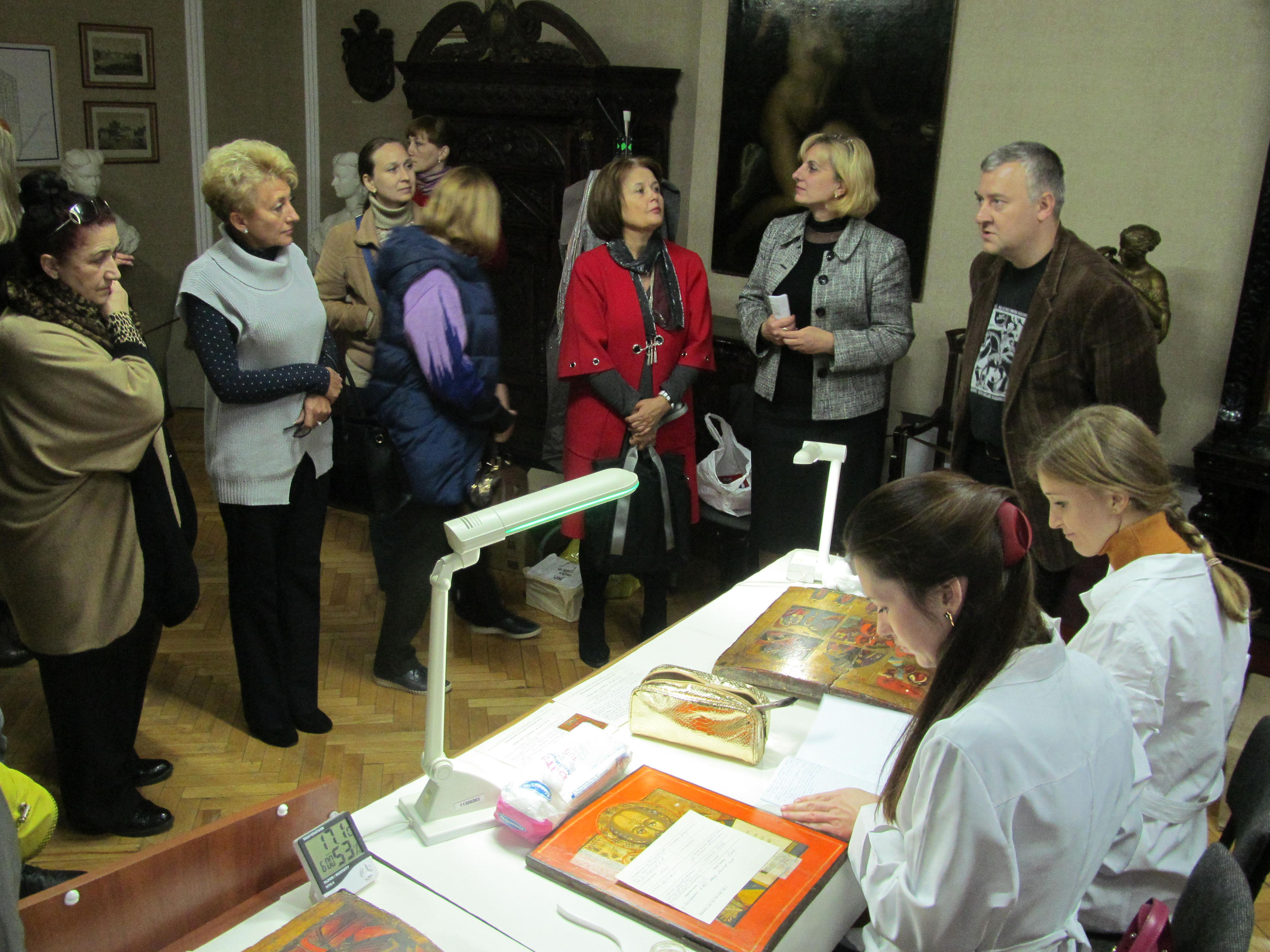 В рамках засідання особливий інтерес та захоплення викликала демонстрація практичної роботи реставраторів Національного реставраційного центру по збереженню та консервації музейних цінностей.