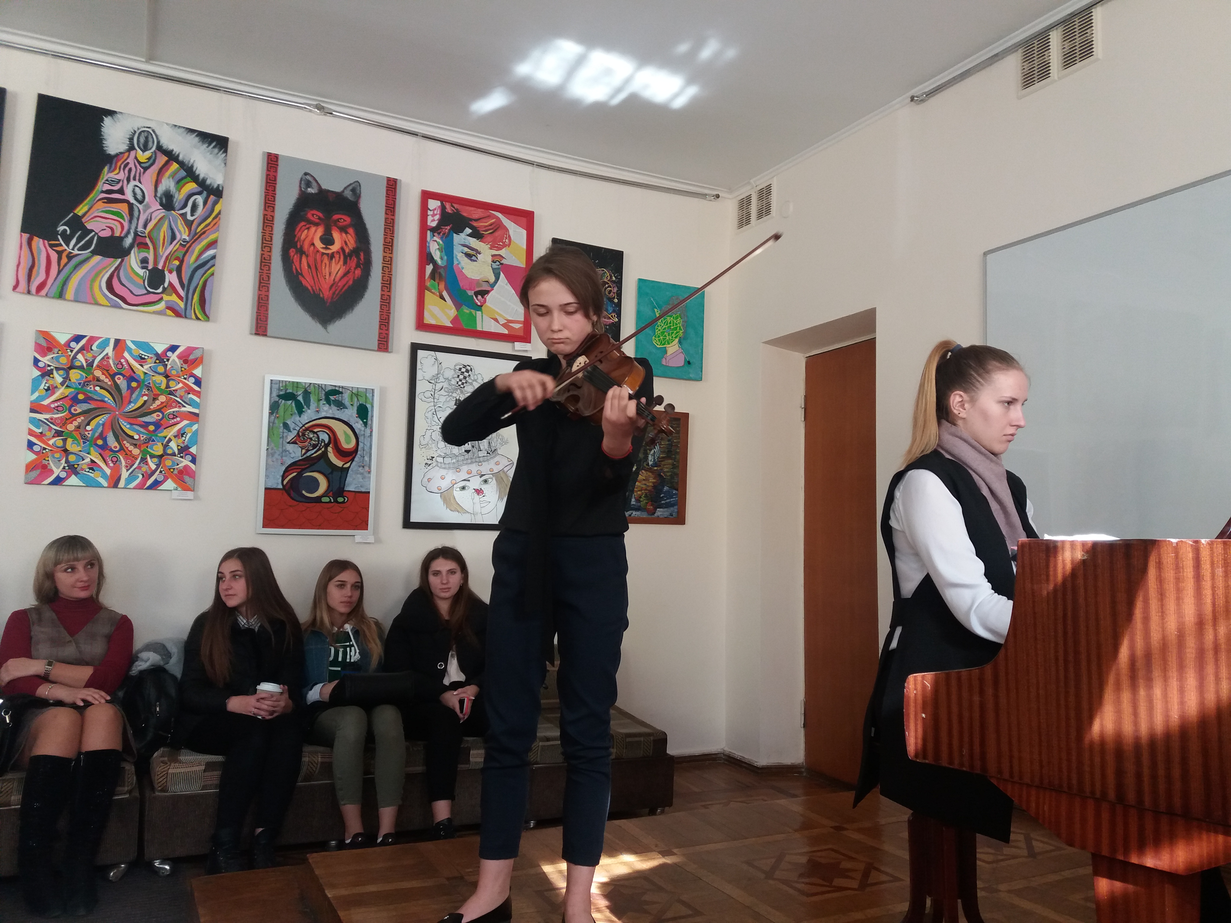 Учні 9-х класів школи, студенти Хмельницької гуманітарно-педагогічної академії, що завітали на презентацію творчості молодих художників, отримали яскраві, позитивні емоції і поштовх до власної творчості.