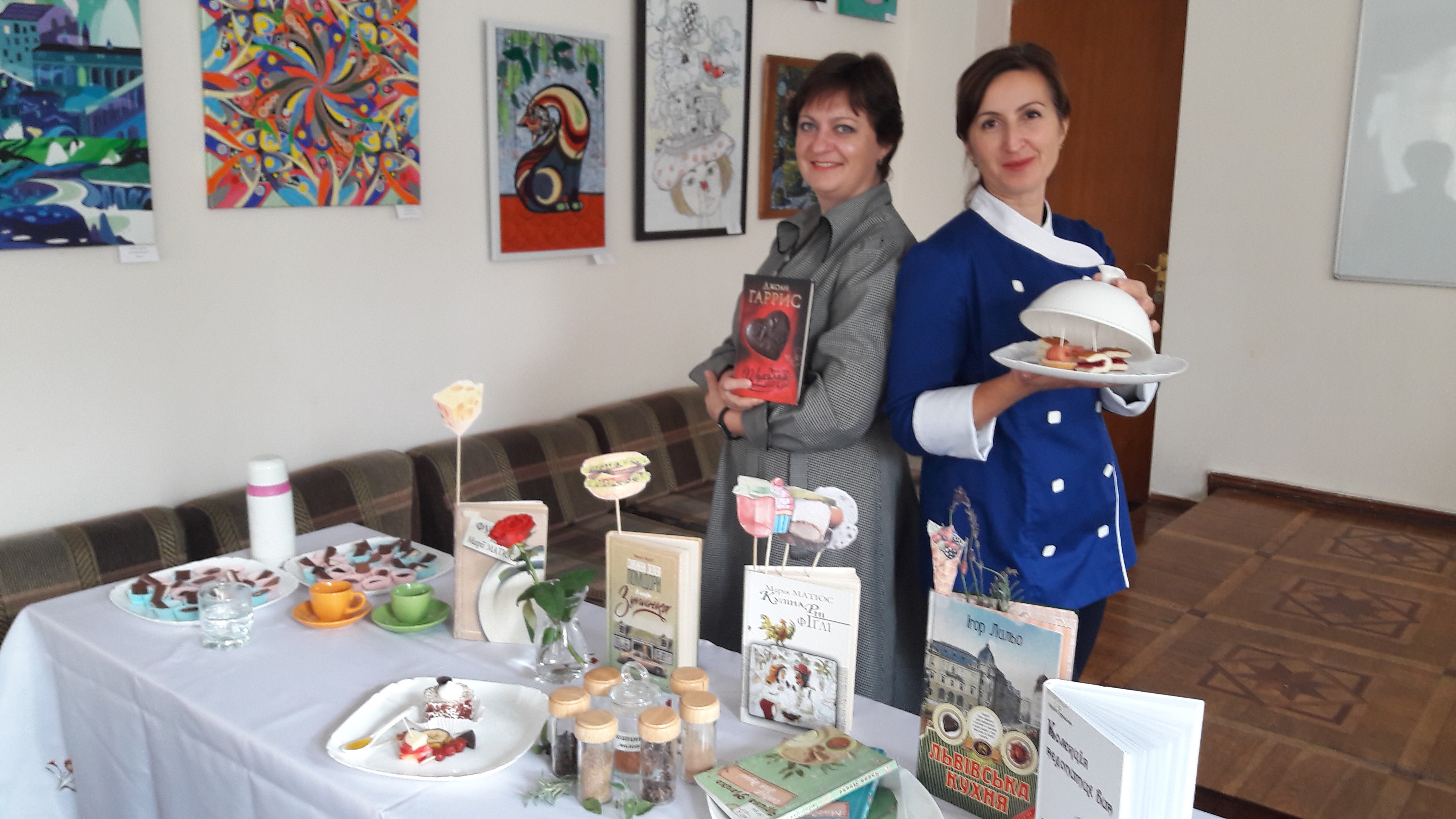 Бібліотекарі роздали їм інформаційні буклети з анотованим списком гастрономічних романів. «Десертом» літературного фуршету став роман Джоан Гарріс «Шоколад», а гості мали можливість посмакувати різними видами шоколаду і здогадатися, який саме компонент надає смаколику пікантного смаку.