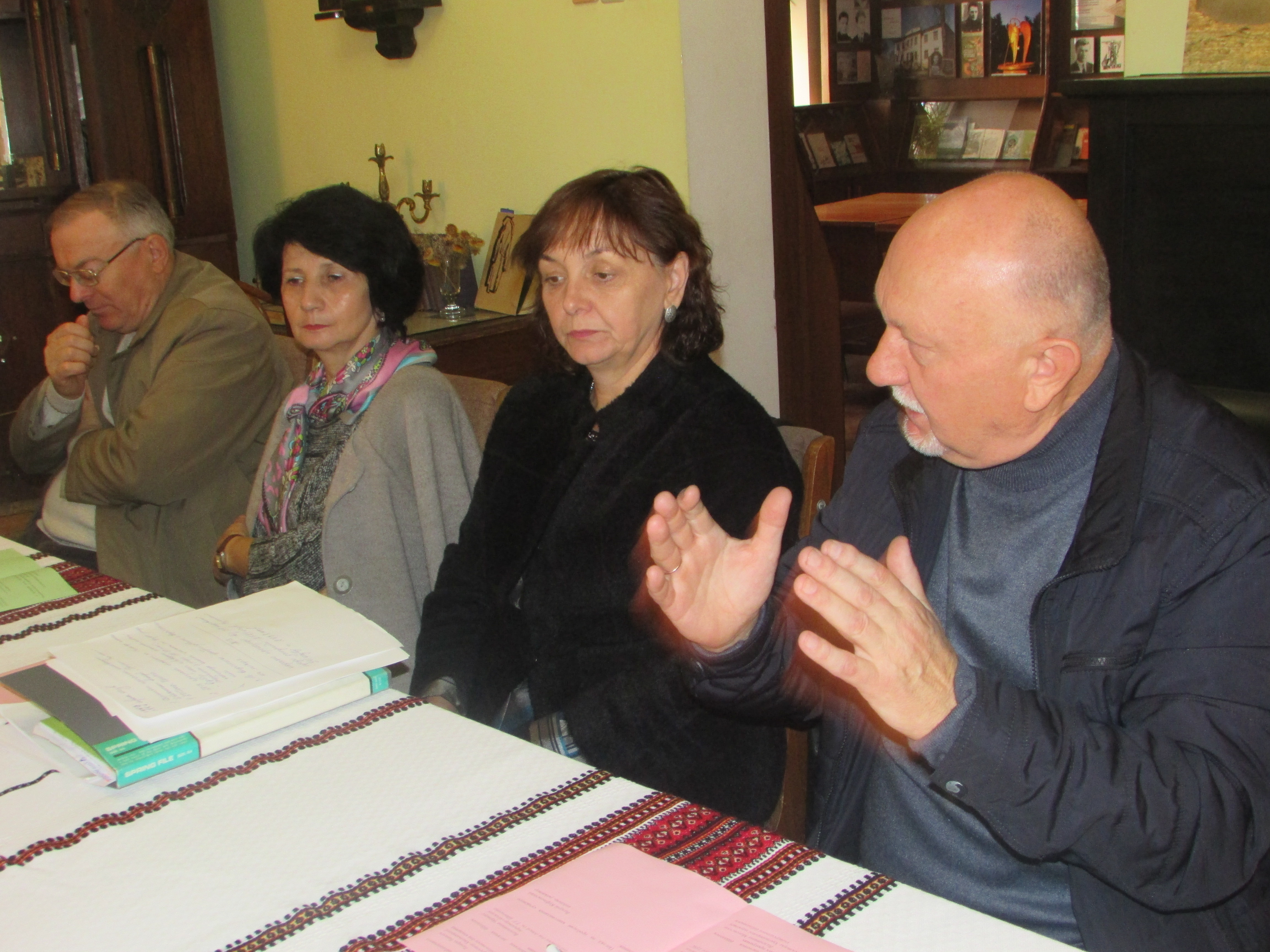 Під час обговорення голова Хмельницької обласної організації Національної спілки письменників України Петро Маліш розповів про досвід книговидання у сусідніх областях та місцеві видавничі проблеми, що впливають на якість, перспективу виходу в світ книг хмельницьких письменників.
