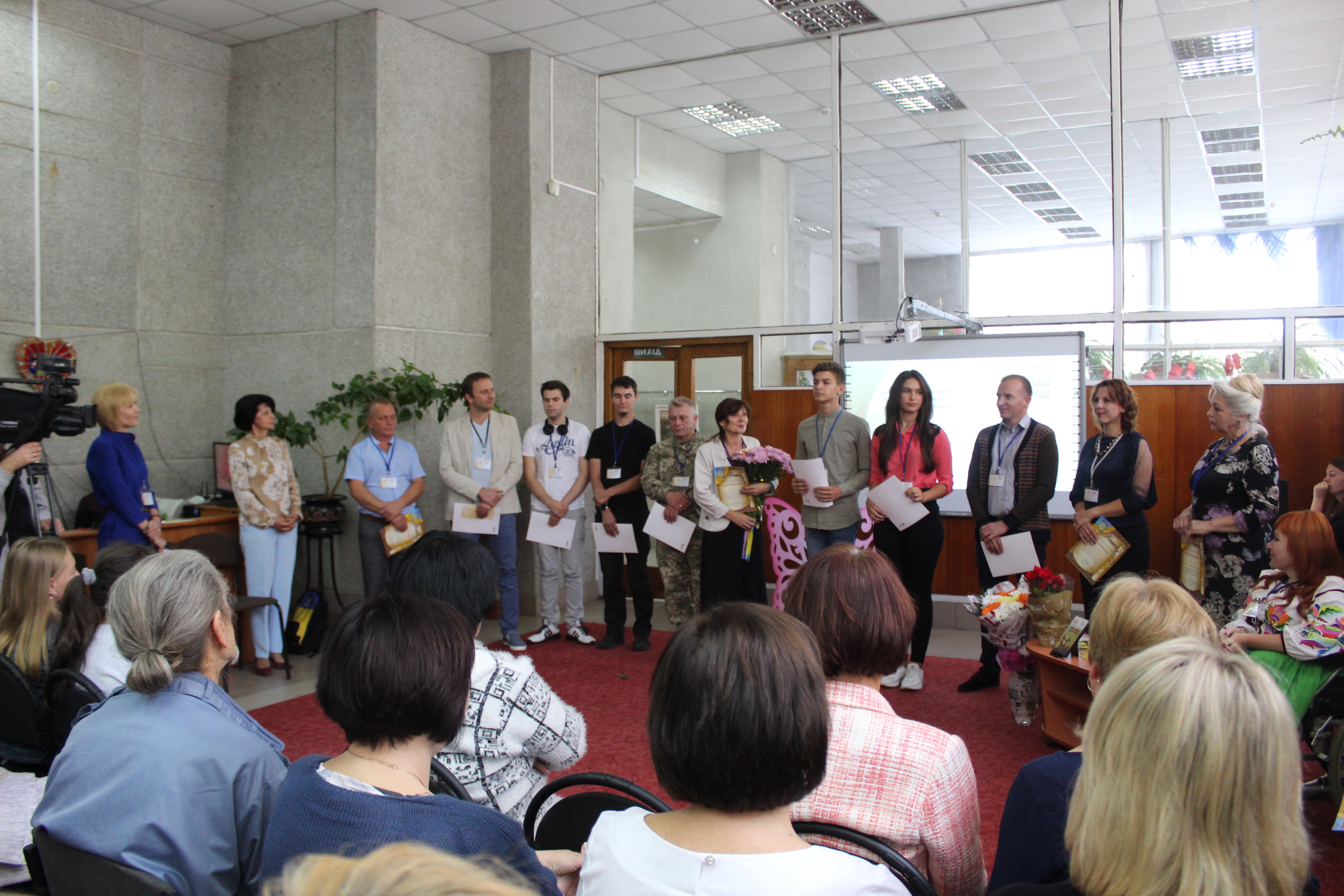 А також відбулася презентація створеного культурного продукту – аудіокниги “Метелики в крижаних панцирах”. Особлива атмосфера панувала у залі, навіяна щирими спогадами про спільну роботу. На презентацію завітали ГО Хмельницької обласної організації УТОС, експерт проєкту пані Ларису Кирикищук, директор Хмельницького інклюзивно-ресурсного центру №1 Ольга Рибак, голова Хмельницького обласного товариства Всеукраїнської організації інвалідів “Союз організації інвалідів України” Анатолій Савчук. Гості заходу першими змогли почути фрагменти аудіокниги та збагнути основні меседжі автора.