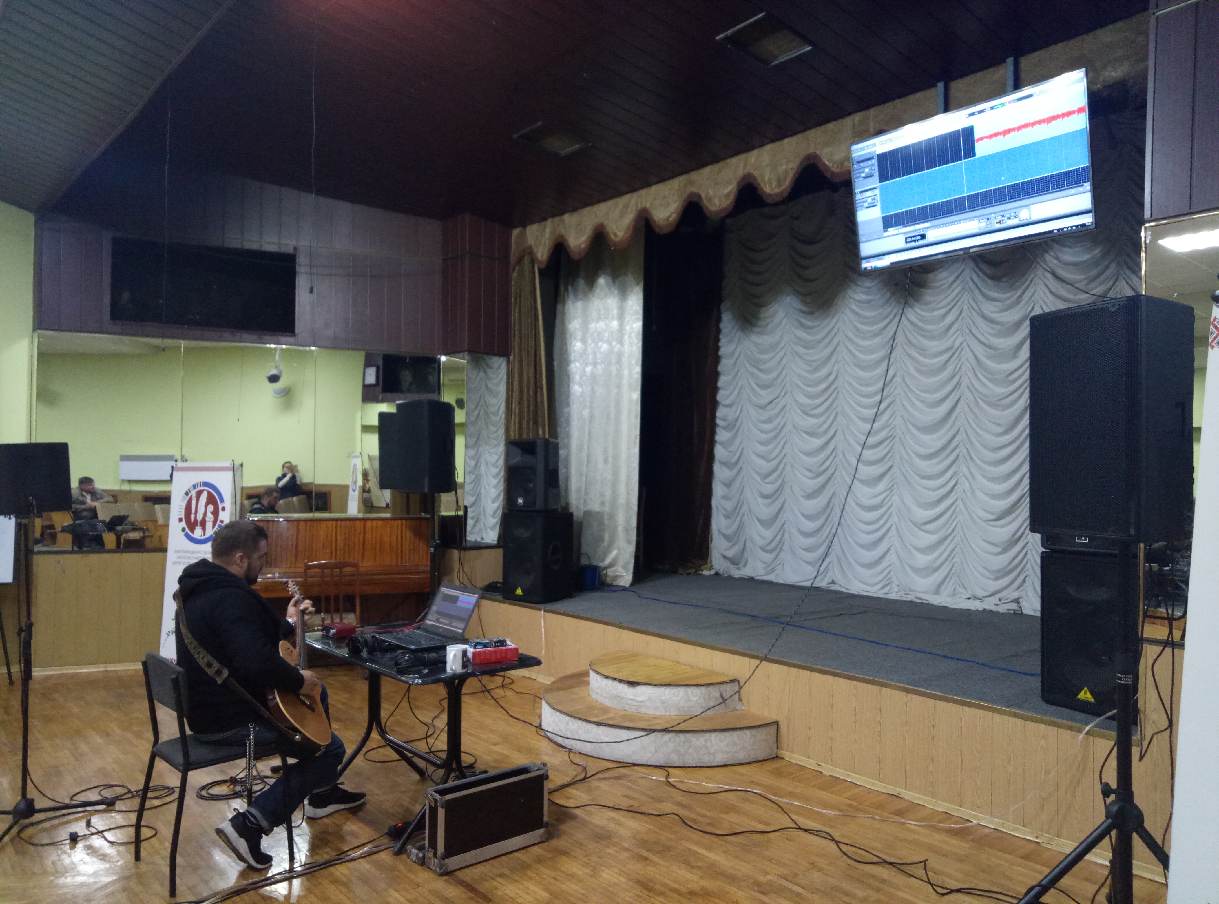 Програма майстер-класу була досить цікавою та насиченою. Учасники мали змогу ознайомитись з технічними характеристиками, правилами монтування, експлуатацією звукотехнічної апаратури, акустичними можливостями сценічних площадок, звуковим та шумовим оформлення творчих заходів та з основами звукозапису.