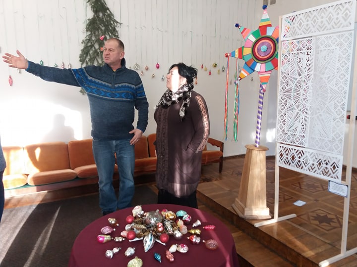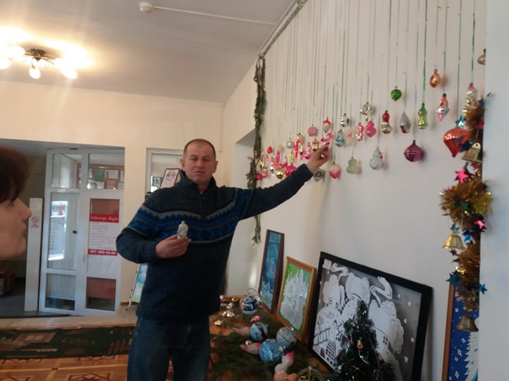Одна з них – виставка новорічних іграшок з приватної колекції Ігоря Байдака. В експозиції – не тільки іграшки з дитинства – скляні будиночки, годинники, кульки, шишки, огірочки, снігуроньки, білочки, зайченята, клоуни, маяк, сова, грибочки, бурульки, але й прикраси, які вже стали раритетом – супутники, дирижаблі, ракети, крокодил Гена з радянського мультфільму, дзига, ретро-авто, мушля, бджілка з сотами, діжечка та ін., Милують око сучасні скляні іграшки – кулі-гіганти, кулі -3D, авторські кулі ручної роботи.