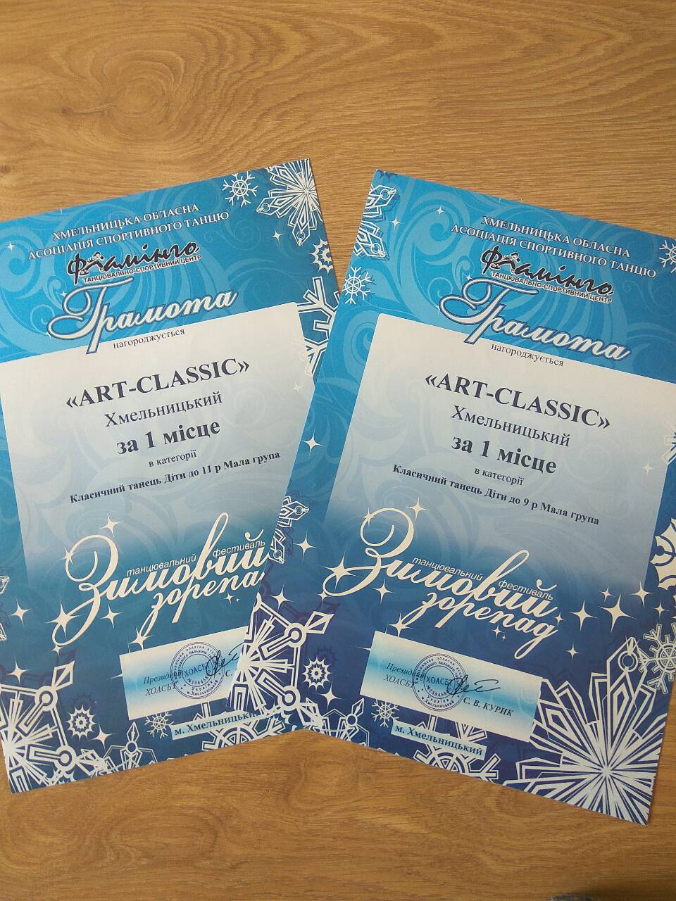 Хореографічна студія при Хмельницькому обласному академічному музично-драматичному театрі ім. М. Старицького  «Арт-Класік» взяла участь у танцювальному фестивалі «Зимовий зорепад», який відбувся в дитячій школі мистецтв міста Хмельницького. Студійці зайняли почесні   призові місця: