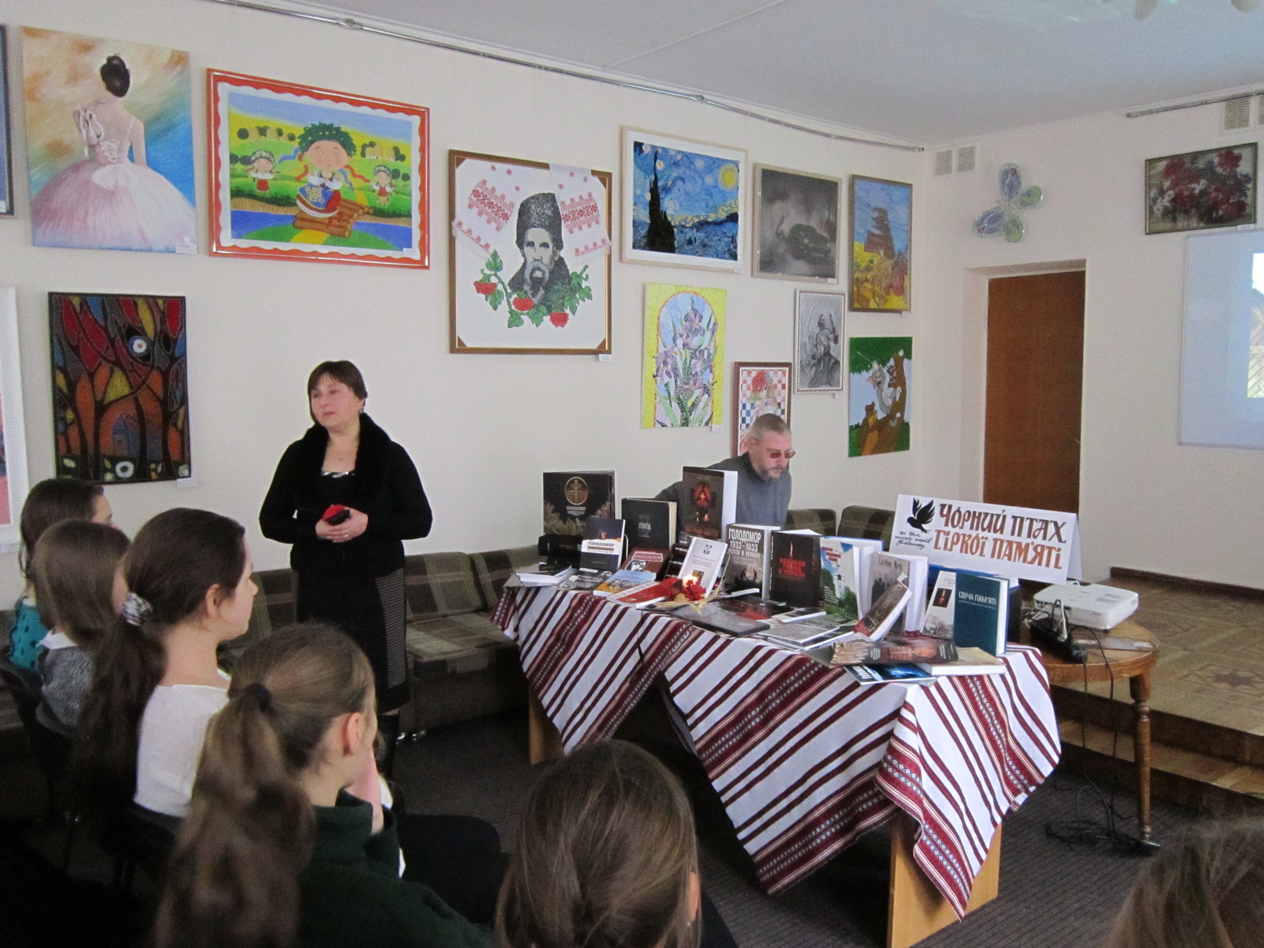 До Дня пам’яті Жертв голодоморів  українського народу в бібліотеці для дітей  присвятили книжково-предметну демонстрацію “Голодомор мовою архівних документів”. Поряд з історичними фактами, фотодокументами, матеріалами про жертви голодомору та політичних репресій було покладено чорну хустину, розбитий глечик з зерном, запалені свічки. Проводячи огляд наданої виставки, бібліотекарі намагалися ознайомити учнів… Продовження