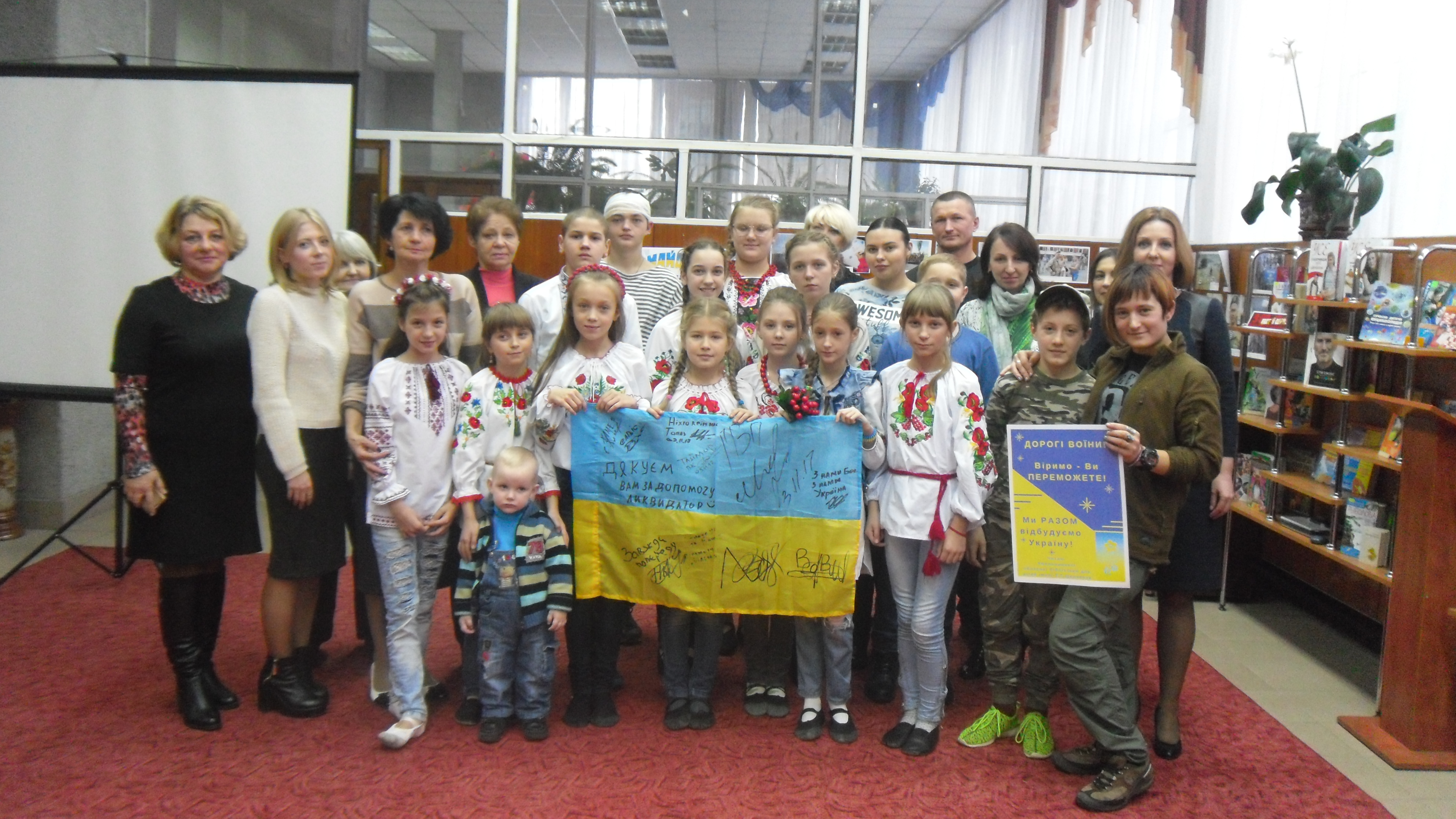 Особливий день, забарвлений особливими емоціями, зустріч з добрими друзями-волонтерами Тетяною  Юзепчук, Віктором Данилевським, Мистецькою сотнею “Гайдамаки”  − ось таким був День Гідності та Свободи в обласній бібліотеці для дітей імені Т.Г.Шевченка. Щирі розмови  зі сльозами на очах, але з вірою у майбутнє. Ті, хто нещодавно були учасниками… Продовження
