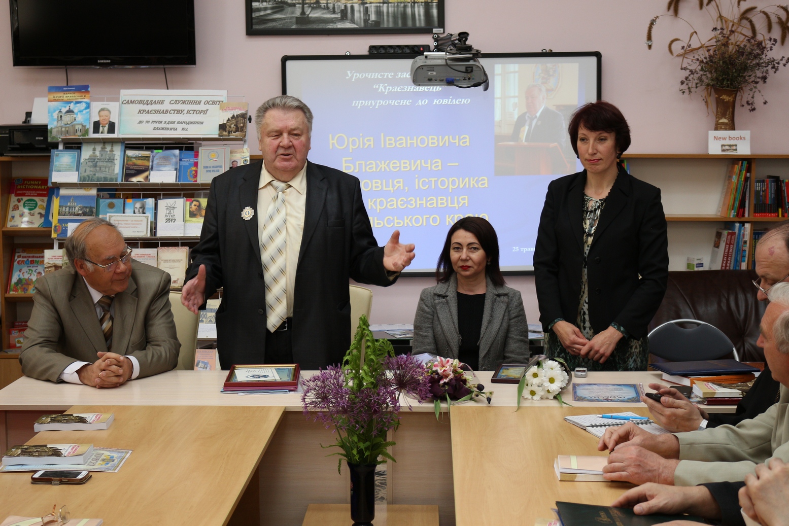 В обласній універсальній науковій бібліотеці відбулося урочисте засідання клубу “Краєзнавець”, приурочене 70-річчю від дня народження Юрія Івановича Блажевича, кандидата історичних наук, голови Хмельницької міської організації Національної спілки краєзнавців України. Урочисте засідання відбулося за участі В.В. Граділь, заступника начальника управління – начальника відділу  управління культури, національностей, релігій та туризму облдержадміністрації,… Продовження